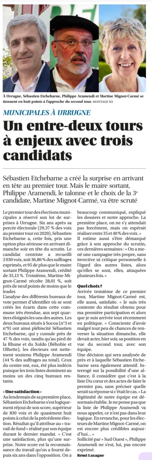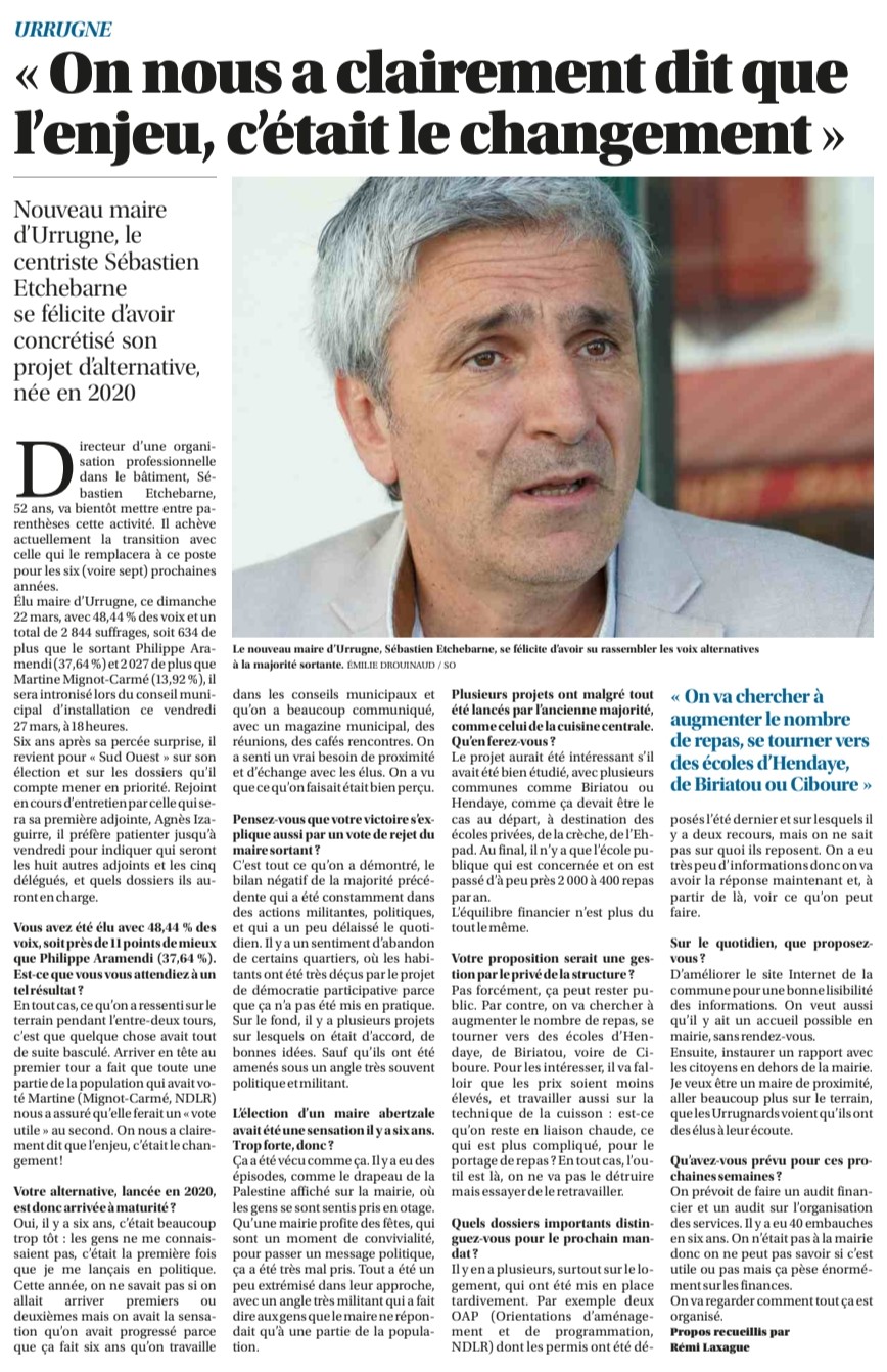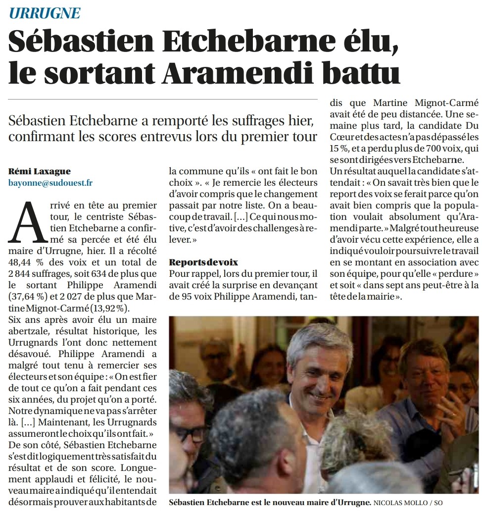 23-03-26 sud-ouest sébastien etchebarne élu le sortant aramendi battu