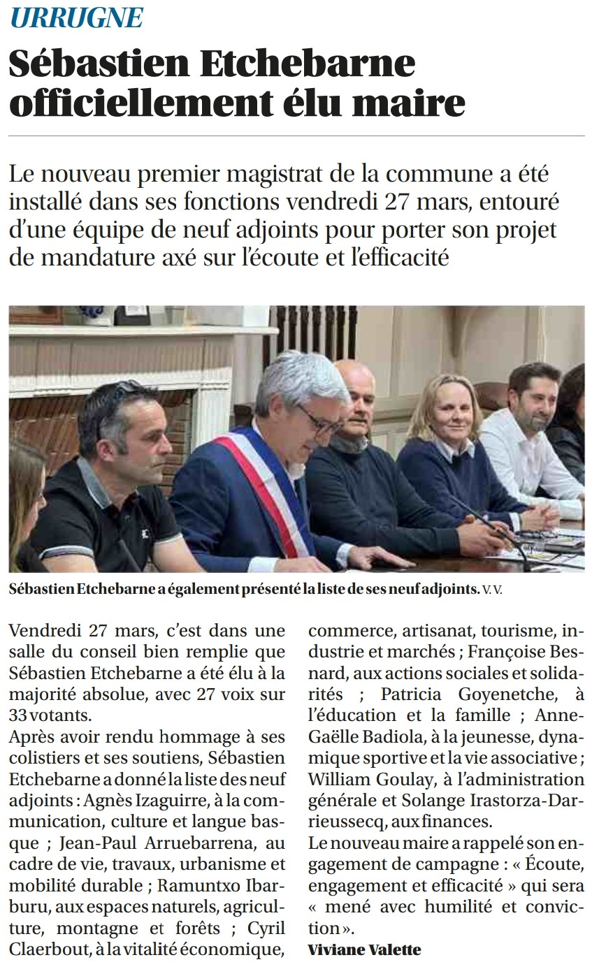 31-03-26 sud-ouest sébastien etchebarne officiellement élu maire