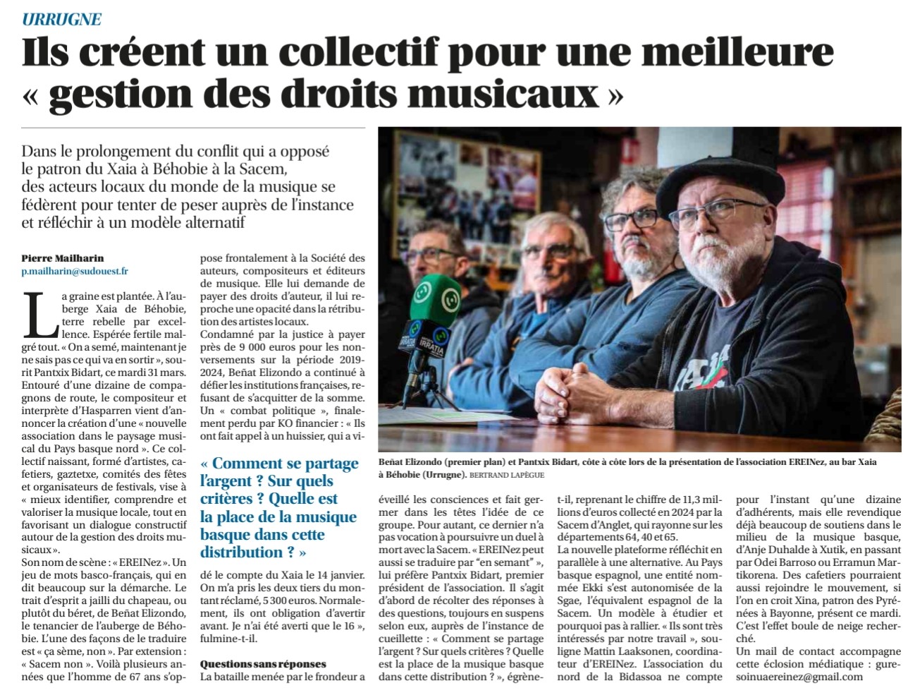 05-04-26 sud-ouest ils créent un collectif pour une meilleure gestion des droits musicaux