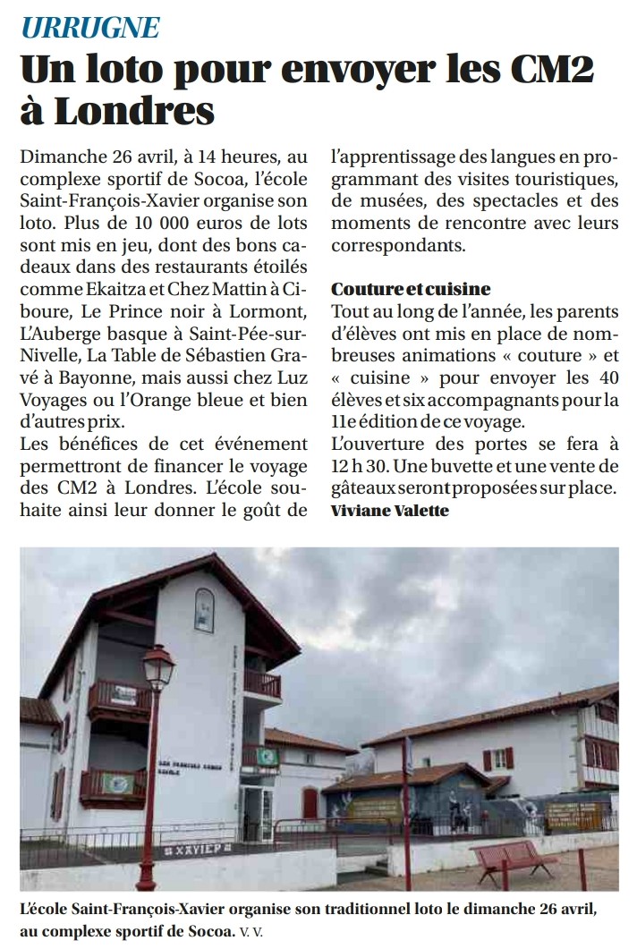 06-04-26 sud-ouest un loto pour envoyer les cm2 à londres