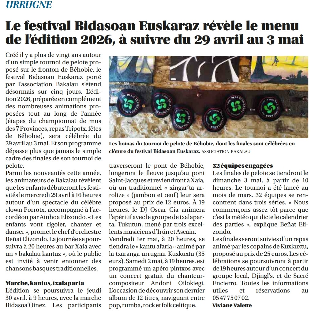10-04-26 sud-ouest le festival bidasoan euskaraz révèle le menu de l’édition 2026