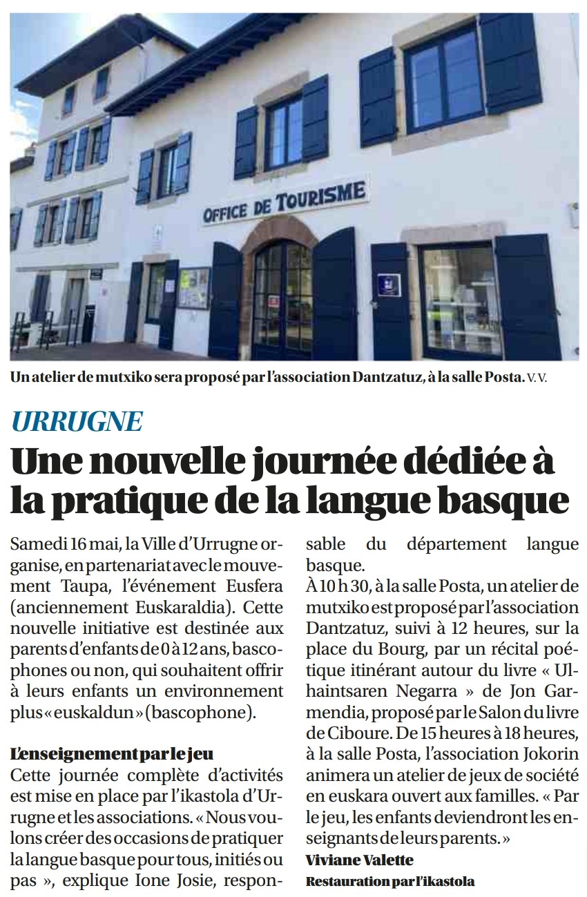 19-01-24 Sud-Ouest un plan euskara pour la commune